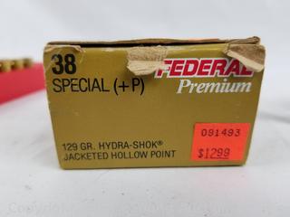 Federal .38 Special 129gr Hydra Shok Jacketed Hollow Point, American Eagle 40 S&W 180gr Full Metal Jacket Flat Point.