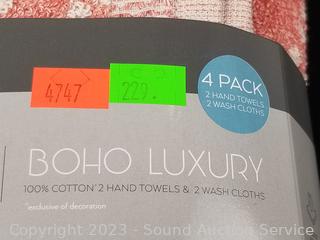 (2) Hand Towels 16" x 30", (2) Washcloths 13" x 13".