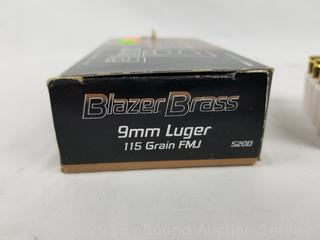 Lot #0122: 50pk Blazer Brass 9mm Luger 115gr FMJ Ammunition