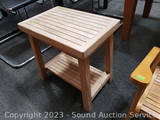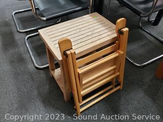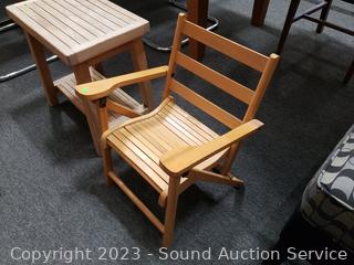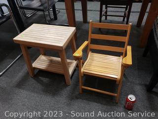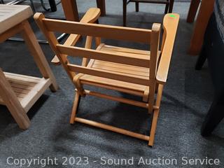 Lot #0024: Adirondack Teak Bench/Table & Childs Wood Folding Chair