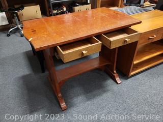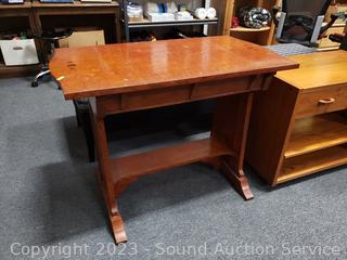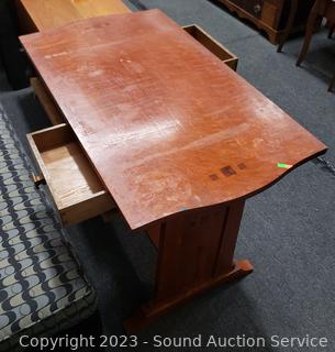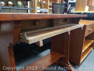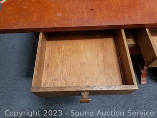Lot #0016: Antique Oak Display Table w/4 Hidden Drawers
