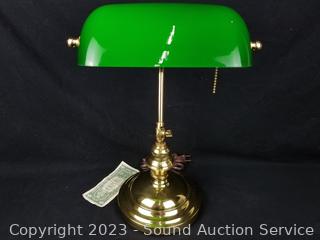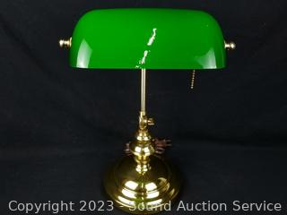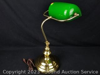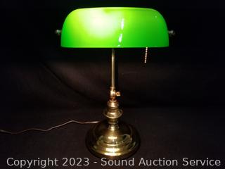 Lot #0063: Executives Brass w/Green Glass Shade Lamp - Works