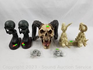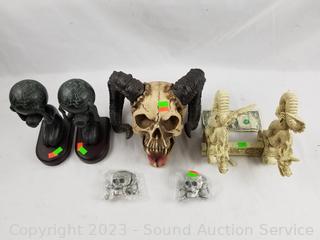 Lot #0293: Skull Decor, Belt Buckles, Sword Holder, Bookends