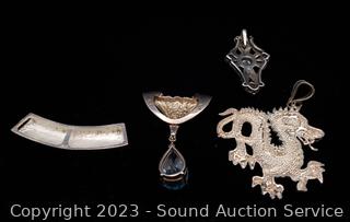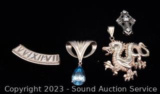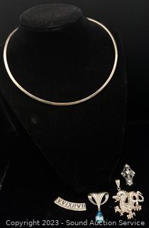 Lot #0090: Sterling Choker Necklace & 4 Pendants