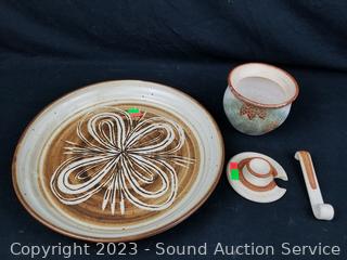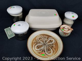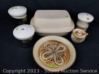 Lot #0098: Vacuum Seal Container, Pottery Roaster, Platter & Honey Pot