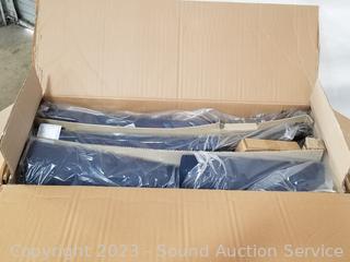 356 Lots including Howard Miller Pendulum Tall Clock, Scad-A-Bout Green Compact Camper Trailer, Contemporary Blue Upholstered Chaise Lounge/Bed, Genuine Leather Sofa, Contrasting Dark/Ivory Table & Chair Set, Ladder, Paddle Board, Crab Traps, Accent Tables, Pendulum Tall Clock, Copperware, Assorted home Improvement, Assorted Tools, 20 TON Bottle Jacks, Footwear, Bird Houses, Wedgwood Fine China, Oaxacan Art, Camping Equipment, Wading Pool, Potting Soil, Ladders, Building Supplies, Painted Vtg. Crosscut Saw, Butcher Block Table, Sofas, Lamps, Artwork, Assorted Home Decor & Much More!!!