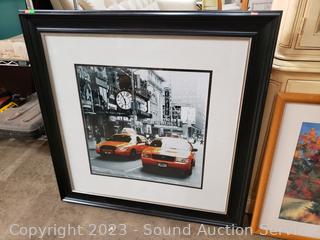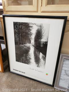 1971 Brett Weston signed Gallery photo print, 30" x 25". Globe print 17" x 23". Residential lake scene print 26" x 38", NY Taxi photo print 36" x 36".