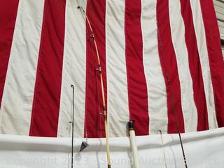 356 Lots including Howard Miller Pendulum Tall Clock, Scad-A-Bout Green Compact Camper Trailer, Contemporary Blue Upholstered Chaise Lounge/Bed, Genuine Leather Sofa, Contrasting Dark/Ivory Table & Chair Set, Ladder, Paddle Board, Crab Traps, Accent Tables, Pendulum Tall Clock, Copperware, Assorted home Improvement, Assorted Tools, 20 TON Bottle Jacks, Footwear, Bird Houses, Wedgwood Fine China, Oaxacan Art, Camping Equipment, Wading Pool, Potting Soil, Ladders, Building Supplies, Painted Vtg. Crosscut Saw, Butcher Block Table, Sofas, Lamps, Artwork, Assorted Home Decor & Much More!!!
