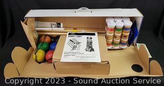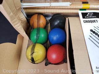 356 Lots including Howard Miller Pendulum Tall Clock, Scad-A-Bout Green Compact Camper Trailer, Contemporary Blue Upholstered Chaise Lounge/Bed, Genuine Leather Sofa, Contrasting Dark/Ivory Table & Chair Set, Ladder, Paddle Board, Crab Traps, Accent Tables, Pendulum Tall Clock, Copperware, Assorted home Improvement, Assorted Tools, 20 TON Bottle Jacks, Footwear, Bird Houses, Wedgwood Fine China, Oaxacan Art, Camping Equipment, Wading Pool, Potting Soil, Ladders, Building Supplies, Painted Vtg. Crosscut Saw, Butcher Block Table, Sofas, Lamps, Artwork, Assorted Home Decor & Much More!!!