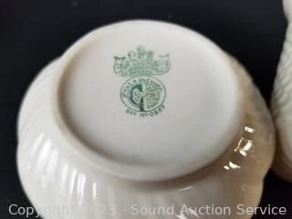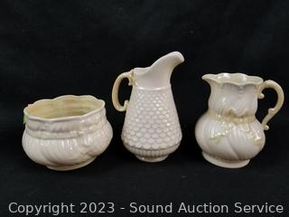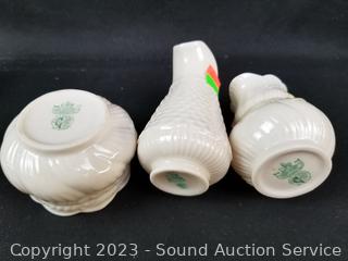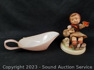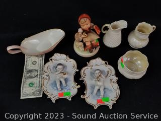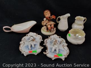 2pc Rosenthal Germany Decor, Lenox gravy boat, TMK-2 #65 "Farewell" Hummel figure, 5.25" H, don't see any issues. 3pc Belleek creamers & sugar.