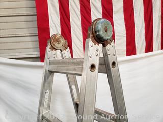 356 Lots including Howard Miller Pendulum Tall Clock, Scad-A-Bout Green Compact Camper Trailer, Contemporary Blue Upholstered Chaise Lounge/Bed, Genuine Leather Sofa, Contrasting Dark/Ivory Table & Chair Set, Ladder, Paddle Board, Crab Traps, Accent Tables, Pendulum Tall Clock, Copperware, Assorted home Improvement, Assorted Tools, 20 TON Bottle Jacks, Footwear, Bird Houses, Wedgwood Fine China, Oaxacan Art, Camping Equipment, Wading Pool, Potting Soil, Ladders, Building Supplies, Painted Vtg. Crosscut Saw, Butcher Block Table, Sofas, Lamps, Artwork, Assorted Home Decor & Much More!!!