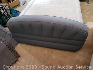 356 Lots including Howard Miller Pendulum Tall Clock, Scad-A-Bout Green Compact Camper Trailer, Contemporary Blue Upholstered Chaise Lounge/Bed, Genuine Leather Sofa, Contrasting Dark/Ivory Table & Chair Set, Ladder, Paddle Board, Crab Traps, Accent Tables, Pendulum Tall Clock, Copperware, Assorted home Improvement, Assorted Tools, 20 TON Bottle Jacks, Footwear, Bird Houses, Wedgwood Fine China, Oaxacan Art, Camping Equipment, Wading Pool, Potting Soil, Ladders, Building Supplies, Painted Vtg. Crosscut Saw, Butcher Block Table, Sofas, Lamps, Artwork, Assorted Home Decor & Much More!!!