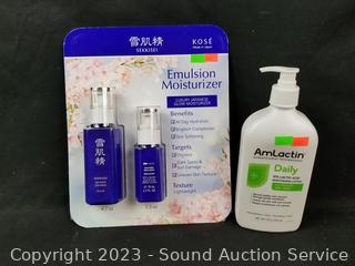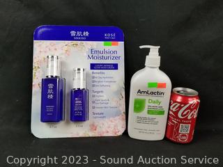 Lot #0239: Amlactin 20oz Daily & Kose 2.3 & 4.7oz Emulsion Moisturizers
