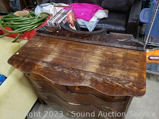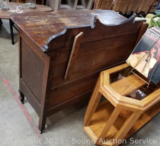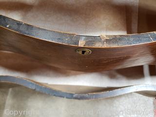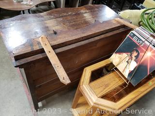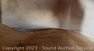 356 Lots including Howard Miller Pendulum Tall Clock, Scad-A-Bout Green Compact Camper Trailer, Contemporary Blue Upholstered Chaise Lounge/Bed, Genuine Leather Sofa, Contrasting Dark/Ivory Table & Chair Set, Ladder, Paddle Board, Crab Traps, Accent Tables, Pendulum Tall Clock, Copperware, Assorted home Improvement, Assorted Tools, 20 TON Bottle Jacks, Footwear, Bird Houses, Wedgwood Fine China, Oaxacan Art, Camping Equipment, Wading Pool, Potting Soil, Ladders, Building Supplies, Painted Vtg. Crosscut Saw, Butcher Block Table, Sofas, Lamps, Artwork, Assorted Home Decor & Much More!!!