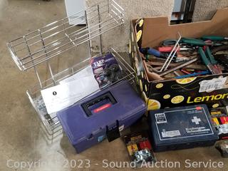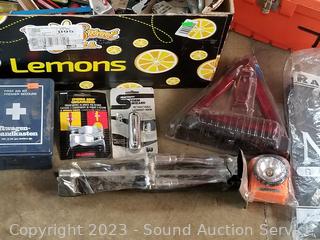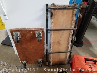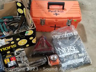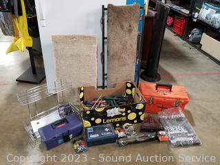356 Lots including Howard Miller Pendulum Tall Clock, Scad-A-Bout Green Compact Camper Trailer, Contemporary Blue Upholstered Chaise Lounge/Bed, Genuine Leather Sofa, Contrasting Dark/Ivory Table & Chair Set, Ladder, Paddle Board, Crab Traps, Accent Tables, Pendulum Tall Clock, Copperware, Assorted home Improvement, Assorted Tools, 20 TON Bottle Jacks, Footwear, Bird Houses, Wedgwood Fine China, Oaxacan Art, Camping Equipment, Wading Pool, Potting Soil, Ladders, Building Supplies, Painted Vtg. Crosscut Saw, Butcher Block Table, Sofas, Lamps, Artwork, Assorted Home Decor & Much More!!!