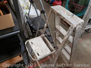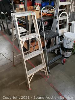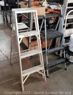 356 Lots including Howard Miller Pendulum Tall Clock, Scad-A-Bout Green Compact Camper Trailer, Contemporary Blue Upholstered Chaise Lounge/Bed, Genuine Leather Sofa, Contrasting Dark/Ivory Table & Chair Set, Ladder, Paddle Board, Crab Traps, Accent Tables, Pendulum Tall Clock, Copperware, Assorted home Improvement, Assorted Tools, 20 TON Bottle Jacks, Footwear, Bird Houses, Wedgwood Fine China, Oaxacan Art, Camping Equipment, Wading Pool, Potting Soil, Ladders, Building Supplies, Painted Vtg. Crosscut Saw, Butcher Block Table, Sofas, Lamps, Artwork, Assorted Home Decor & Much More!!!