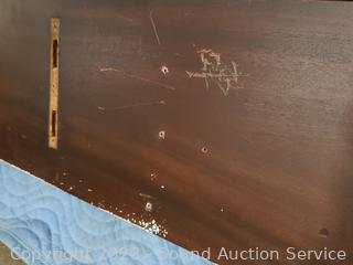356 Lots including Howard Miller Pendulum Tall Clock, Scad-A-Bout Green Compact Camper Trailer, Contemporary Blue Upholstered Chaise Lounge/Bed, Genuine Leather Sofa, Contrasting Dark/Ivory Table & Chair Set, Ladder, Paddle Board, Crab Traps, Accent Tables, Pendulum Tall Clock, Copperware, Assorted home Improvement, Assorted Tools, 20 TON Bottle Jacks, Footwear, Bird Houses, Wedgwood Fine China, Oaxacan Art, Camping Equipment, Wading Pool, Potting Soil, Ladders, Building Supplies, Painted Vtg. Crosscut Saw, Butcher Block Table, Sofas, Lamps, Artwork, Assorted Home Decor & Much More!!!