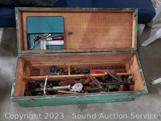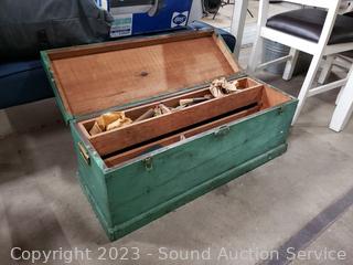 Lot #0349: Green Wood Tool Chest w/Tools