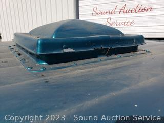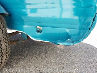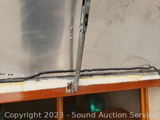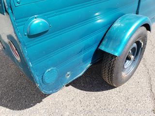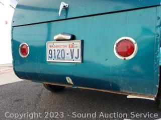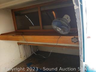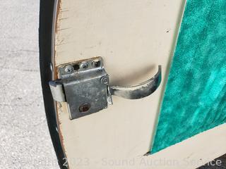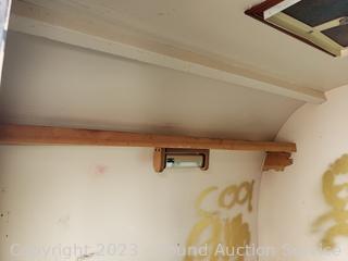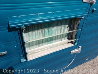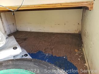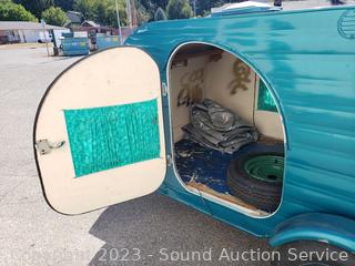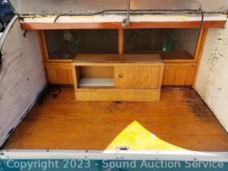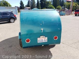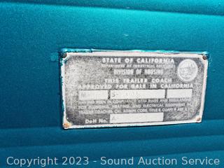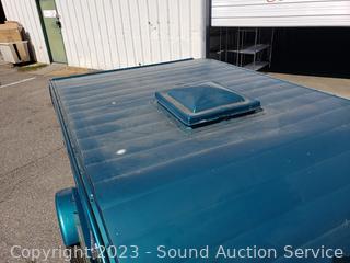 NO TITLE, as is. Has seen better days, great project piece! Various dents, scuffs in paint finish, trim coming free in places, right rear side doesn't sit flush with storage compartment, refer to photos for more info. 60" H x 96" L x 48" W (not including the tongue). Fits a 2" ball.