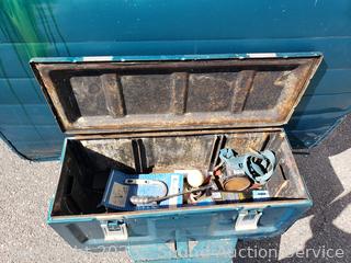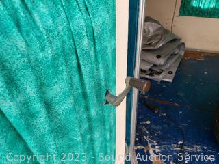 356 Lots including Howard Miller Pendulum Tall Clock, Scad-A-Bout Green Compact Camper Trailer, Contemporary Blue Upholstered Chaise Lounge/Bed, Genuine Leather Sofa, Contrasting Dark/Ivory Table & Chair Set, Ladder, Paddle Board, Crab Traps, Accent Tables, Pendulum Tall Clock, Copperware, Assorted home Improvement, Assorted Tools, 20 TON Bottle Jacks, Footwear, Bird Houses, Wedgwood Fine China, Oaxacan Art, Camping Equipment, Wading Pool, Potting Soil, Ladders, Building Supplies, Painted Vtg. Crosscut Saw, Butcher Block Table, Sofas, Lamps, Artwork, Assorted Home Decor & Much More!!!
