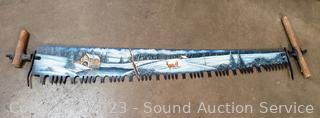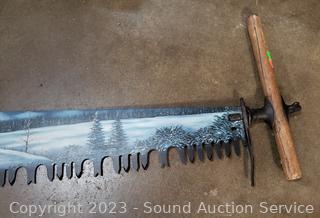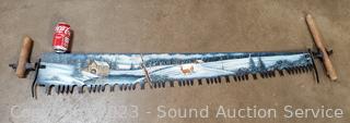 356 Lots including Howard Miller Pendulum Tall Clock, Scad-A-Bout Green Compact Camper Trailer, Contemporary Blue Upholstered Chaise Lounge/Bed, Genuine Leather Sofa, Contrasting Dark/Ivory Table & Chair Set, Ladder, Paddle Board, Crab Traps, Accent Tables, Pendulum Tall Clock, Copperware, Assorted home Improvement, Assorted Tools, 20 TON Bottle Jacks, Footwear, Bird Houses, Wedgwood Fine China, Oaxacan Art, Camping Equipment, Wading Pool, Potting Soil, Ladders, Building Supplies, Painted Vtg. Crosscut Saw, Butcher Block Table, Sofas, Lamps, Artwork, Assorted Home Decor & Much More!!!