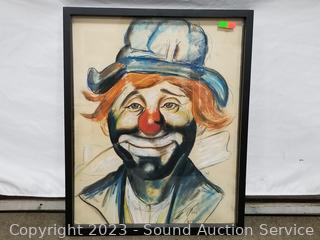 Lot #0351: Signed Emmett Kelley Charcoal & Floral Print Artwork