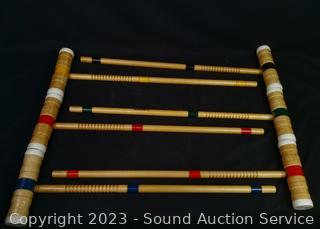 356 Lots including Howard Miller Pendulum Tall Clock, Scad-A-Bout Green Compact Camper Trailer, Contemporary Blue Upholstered Chaise Lounge/Bed, Genuine Leather Sofa, Contrasting Dark/Ivory Table & Chair Set, Ladder, Paddle Board, Crab Traps, Accent Tables, Pendulum Tall Clock, Copperware, Assorted home Improvement, Assorted Tools, 20 TON Bottle Jacks, Footwear, Bird Houses, Wedgwood Fine China, Oaxacan Art, Camping Equipment, Wading Pool, Potting Soil, Ladders, Building Supplies, Painted Vtg. Crosscut Saw, Butcher Block Table, Sofas, Lamps, Artwork, Assorted Home Decor & Much More!!!