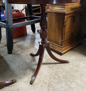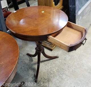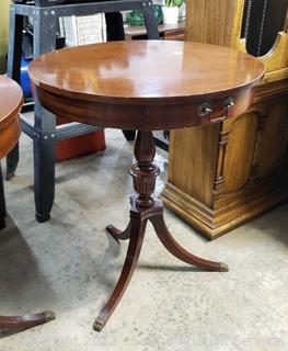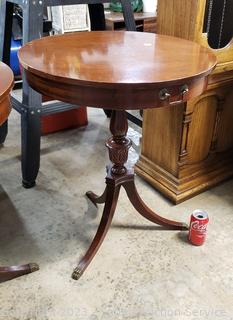 Lot #0093: Vtg. Mahogany Round Claw Foot Single Drawer Accent Table