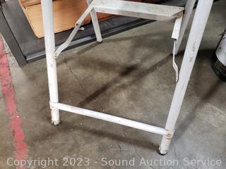356 Lots including Howard Miller Pendulum Tall Clock, Scad-A-Bout Green Compact Camper Trailer, Contemporary Blue Upholstered Chaise Lounge/Bed, Genuine Leather Sofa, Contrasting Dark/Ivory Table & Chair Set, Ladder, Paddle Board, Crab Traps, Accent Tables, Pendulum Tall Clock, Copperware, Assorted home Improvement, Assorted Tools, 20 TON Bottle Jacks, Footwear, Bird Houses, Wedgwood Fine China, Oaxacan Art, Camping Equipment, Wading Pool, Potting Soil, Ladders, Building Supplies, Painted Vtg. Crosscut Saw, Butcher Block Table, Sofas, Lamps, Artwork, Assorted Home Decor & Much More!!!
