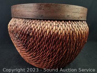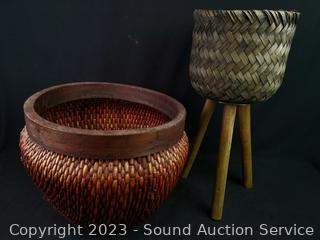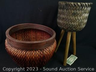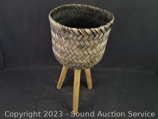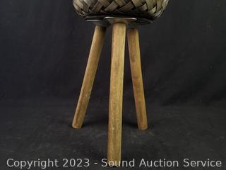 Lot #0024: Woven Basket Planter Pot Stand & Basket
