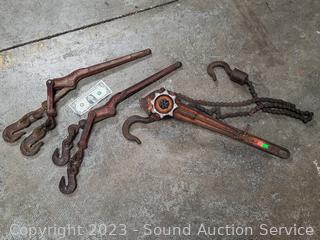 Lot #0130: 2 Chain Binders & Ratchet Hoist