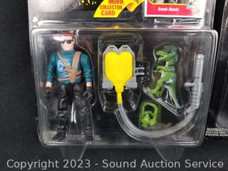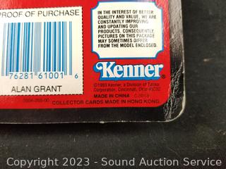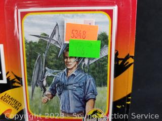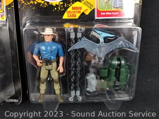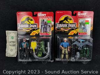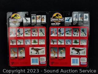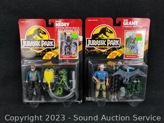 Alan Grant w/Aerial Net Trap & Dennis Nedry w/Tranq-Spray Gun & Dino-Damage Arm. Both are sealed, plastic starting to separate from packaging.