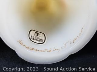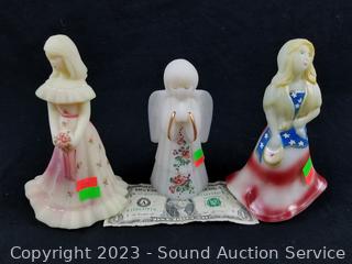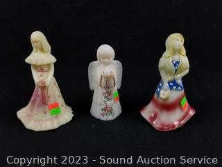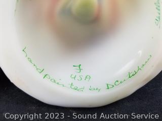 Lot #0038: 3 Vintage Hand Painted Stain Milk/Uranium Glass Sculptures