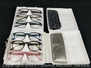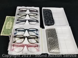 Lot #0275: 6 Foster Grant +2.5 Reading Glasses w/2 Cases