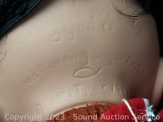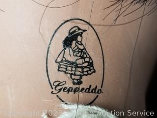Have a musty odor. Geppedo Dolls of the world Takoda doll, Kaumealani doll, and others, don't see marks, or unable to make out. Don't see any issues.