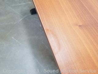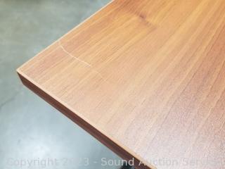 Some minor scuffs, scratches, a coupe bubbles in along back edge of table surface. Works. 24.75"-50.75" H x 47" x 29.5".