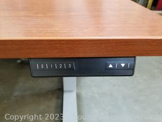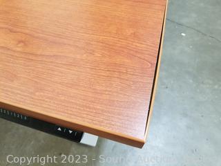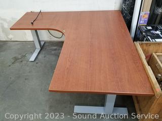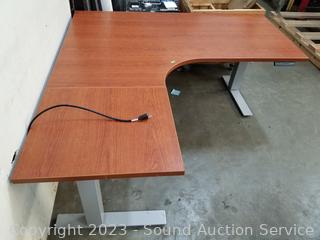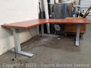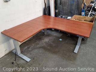 Lot #0322: Adjustable Height Wood Grain Laminate Corner Desk