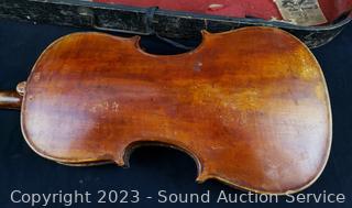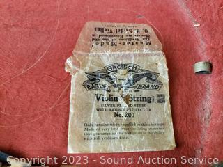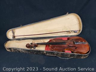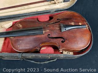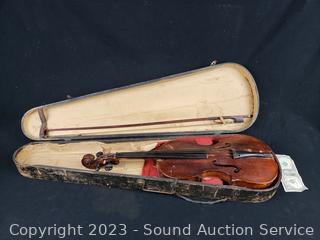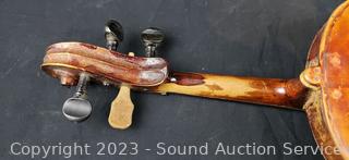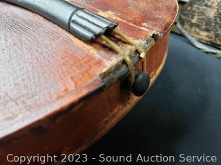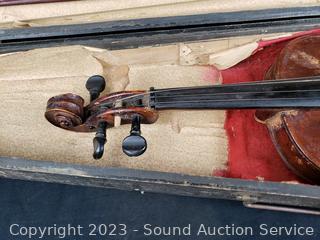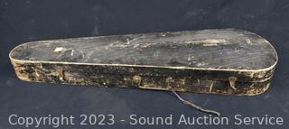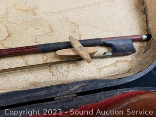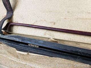 Comes with bow & wood case. Various scuffs, scratches, wear to finish. 23" x 8".