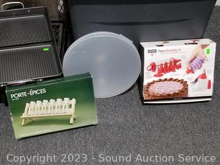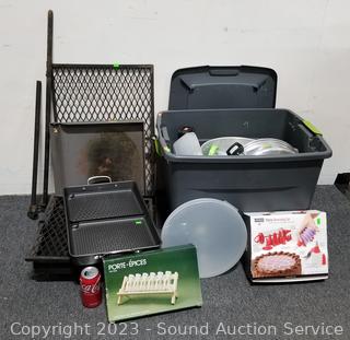 Vacuum sealer (works), pastry decorating press, Prepology system, pie storage containers, campfire grills?, & more. Refer to photos for more info.