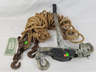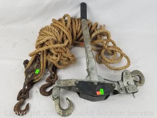 Lot #0208: Cable Ratcheting Winch & Rope Pulley System
