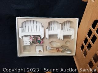 17" H x 19" x 12" dollhouse. Refer to photos for furniture, accessories.