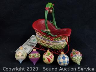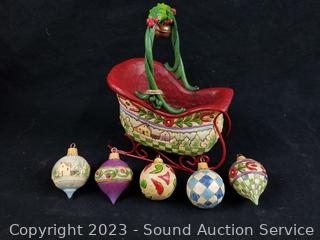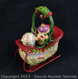 Lot #0029: Jim Shore Set of 6 Christmas Sleigh w/Hanging Ornament Figurine