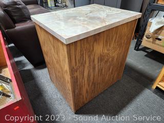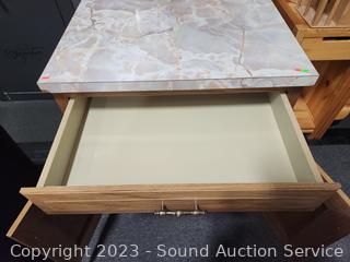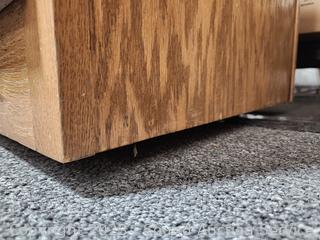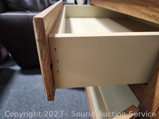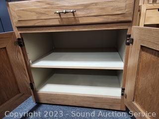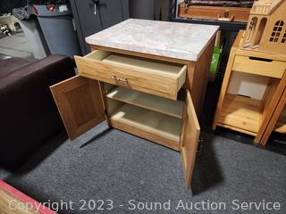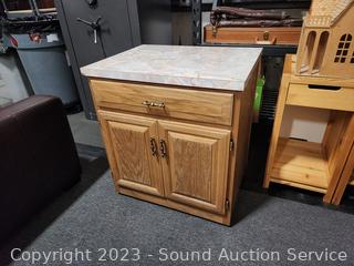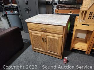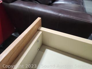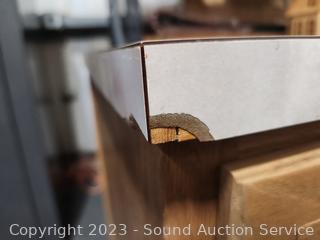 Chip on edges of laminate. Single drawer, lower cabinet. 32" H x 29.25" W x 22.75" D.
