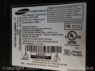 Lot #0307: Samsung PN43F4500 43" Plasma Display TV