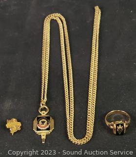 Lot #0144: 10K Gold 1955 Sunny Side HS Class Ring, Pendant & Pin