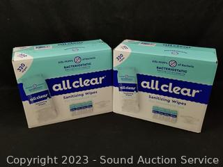 Lot #0187: (2) 320ct All Clear Household Sanitizing Wipes