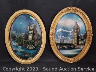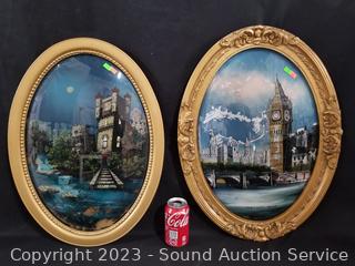 23" x 17". Titled "Westminster Bridge" & "On the Danube". Some of the paint is wearing off, some scuffs on frames.