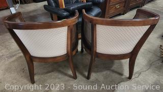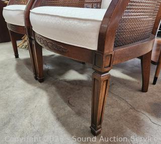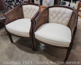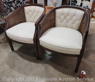 Lot #0009: 2 Ivory Tufted Cane Side Accent Chairs