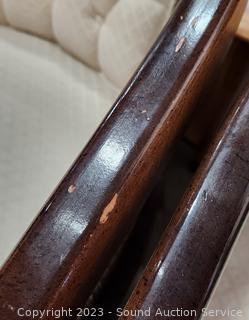 Some scuffs, wear to wood finish. 29" H x 23" W x 18" to seat.