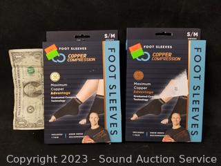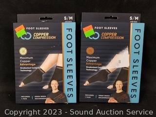 Lot #0245: 2 Pairs Copper Compression Foot Sleeves S:S/M